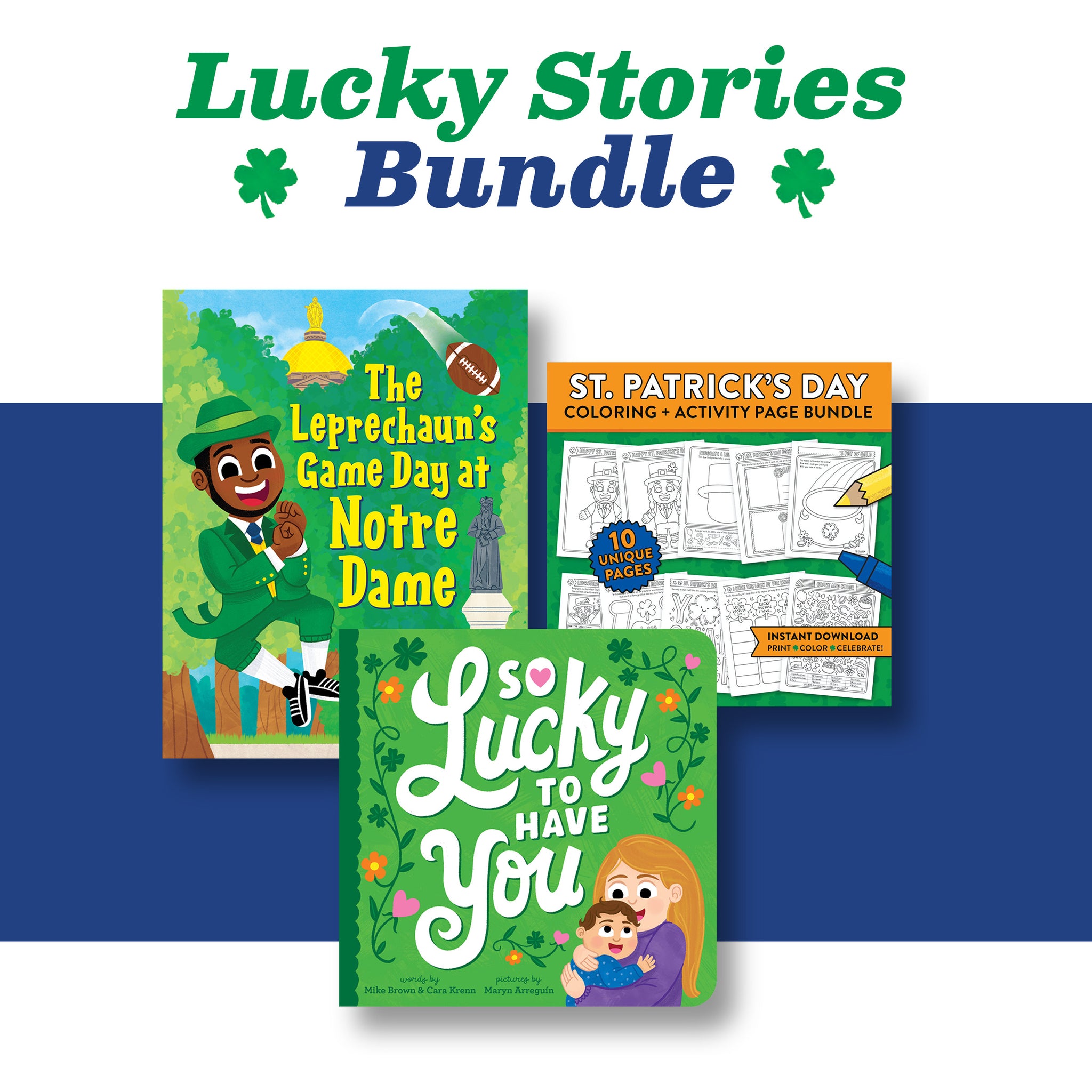 The Lucky Stories Bundle pairs The Leprechaun’s Game Day at Notre Dame, a playful picture book that brings Irish tradition and game day excitement to life, with So Lucky to Have You, a warm and meaningful story that encourages gratitude and connection.